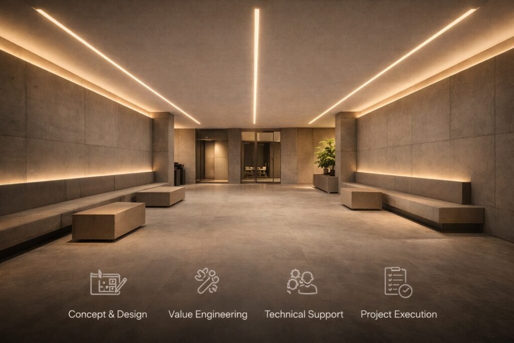 Avenza International delivers architectural lighting solutions designed to support real-world projects across commercial, residential, hospitality, and urban environments. We work closely with developers, consultants, and contractors to provide lighting systems that meet technical requirements, visual comfort standards, and project timelines